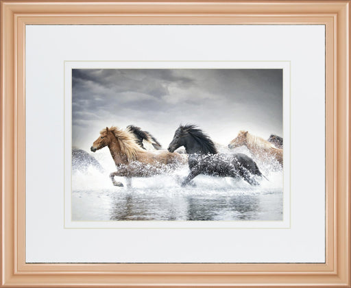 Classy LivingExperience the raw power and freedom of wild horses captured in mid-gallop through shimmering water. This striking photograph freezes a dynamic mom...
