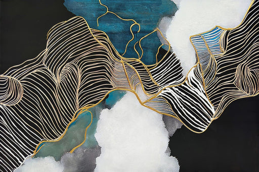 Classy LivingDynamic black, gold, teal, and white abstract art with hand-embellished raised textures for a sophisticated, modern touch.Product Features Hand-pai...