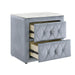 This majestic nightstand is a statement piece that exudes luxury and grandeur, perfect for creating a dramatic bedroom setting. It boasts a finish that encapsulates modern opulence, while its sumptuous, tufted nightstand are upholstered in a rich velvet fabric that offers an indulgent tactile experience.