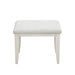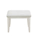 Vintage and inviting, the Camila Vanity Stool has silver-tipped intricate egg-and-dart molding beneath the welted seat cushion, upholstered in a soft cream texture. The semi-transparent creamy white finish enhances the distinctive swirly ash veneer construction of the base and legs. The perfect complement to the Camila Vanity.
