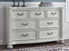 Transform your inner sanctum into a haven of timeless elegance and functionality. This traditionally styled dresser is adorned in a classic antiqued white finish, highlighted by a serpentine-shaped front with thick decorative moulding. Its drawers are packed with ample storage possibilities. And did we mention the stylish reeded bun feet? Talk about relaxed refinement.
