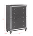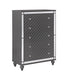 Elevate your sanctuary with this dazzling bedroom collection, where contemporary chic meets timeless charm. The suite boasts a stunning graphite finish, imbuing your space with an air of sophistication and modern luxury. At the heart lies a plush, tufted bed that invites you to indulge in comfort, highlighted by integrated LED lighting. Ample storage solutions are provided through sleek, lined dressers and nightstands, where functionality meets finesse.