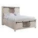 The Scott Platform Storage Bed will look great in your bedroom! This platform storage bed features open display space in the headboard as well as the footboard. Along the headboard and footboard is black, metal trim to easily slide the cabinet doors to access your belongings. The walnut distressed finish will look perfect with any existing decor you might have, instantly giving you that transitional farmhouse style. Since this is a platform bed, you will only need a mattress, so feel free to throw out that old box spring. Add the Scott Platform Storage Bed to your home today!