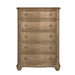 Bring the essence of an elegant home in the French countryside to your bedroom with the Weston Hills Five Drawer Chest. Five storage drawers allow you to neatly store away your belongings, while the surface is perfect for placing a lamp and keeping other bedroom essentials conveniently close. The knob hardware has an understated pewter finish for an effortless look. White cerusing on cathedral hickory veneers enhances the grain and adds softness to the warm tones of the wood. Shapley fronts, rounded corners, and walnut inlays add distinction and character. Weston Hills --perfectly timeless, perfectly today, perfectly you.