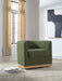 Take contemporary style for a spin with this accent chair. Handsome in a deep forest green, it adds a splash of sophistication to a reading nook or living room. The chair's handy swivel base ensures you can always find your perfect angle, while wood accent trim perfectly punctuates the look.
