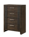 Create a warm and inviting retreat with this beautifully crafted bedroom ensemble, where timeless design meets modern functionality. Featuring a rich wood finish and sleek, linear details, this collection strikes the perfect balance between rustic charm and contemporary sophistication. The centerpiece showcases a plush, upholstered headboard framed in deep tones, offering a cozy and elegant touch. Matching storage pieces provide generous space to organize your essentials, all accented with polished hardware for a refined look. Perfect for those seeking style and practicality, this group transforms your space into a harmonious haven.