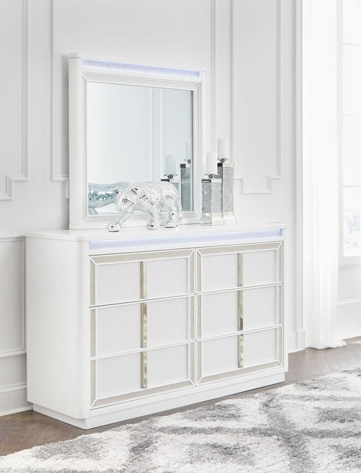 Signature Design by Ashley®Transform your bedroom with this set. Contemporary Glam design. Made with solid wood components, MDF substrate and decorative PVC laminate. Brigh...