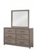 Discover the perfect blend of modern simplicity and understated elegance with this contemporary bedroom collection. Each piece, fashioned with a sleek, minimalist design and a soothing grey oak finish, offers a tranquil backdrop for your personal retreat. The collection is thoughtfully composed of a clean-lined bed frame, a streamlined dresser with ample storage, complemented by a large, practical mirror, and a nightstand that provides easy access to your nighttime essentials.