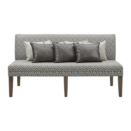 Elements InternationalThe Maddox Dining Loveseat with Five Pillows takes dining seating to the next level. This piece is fully upholstered in taupe fabric. Three taupe p...