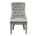 A great dining experience requires a great chair. The host chair has deeply padded and upholstered seat and back. outlined with antique brass nail head trim. The back is button tufted and gracefully shaped to cradle you in comfort. Turned front legs provide a vintage touch.