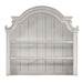 Features planked back panel, two wood framed adjustable shelves, heavily craved bonnet top and LED touching lighting. Cannot stand alone. Pair with the buffet to make a complete set.
