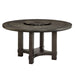 Create a welcoming and stylish dining space with this beautifully crafted set, designed for both everyday meals and special gatherings. The round tabletop and accompanying turntable offers a spacious surface with a rich, dark finish that adds a touch of sophistication to any room. A sturdy pedestal base provides excellent support while enhancing the set’s elegant silhouette. The coordinating chairs feature plush, upholstered seating and high backs for superior comfort, ensuring an enjoyable dining experience. With its timeless design and versatile appeal, this set seamlessly blends classic charm with modern functionality, making it the perfect addition to any home.