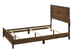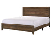 This bedroom set offers a minimalist design with a nod to rustic aesthetics, perfect for creating a serene and uncluttered space. The straightforward lines of the bed frame, combined with the wood finish, exude a sense of calm and earthiness. The accompanying pieces, including a simple dresser with a matching mirror, a functional chest, and a streamlined nightstand, are all characterized by their clean profiles and understated hardware. This collection is designed for practicality and durability, with ample storage options that cater to a hassle-free, organized lifestyle.