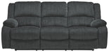 Built for luxury, this reclining sofa lets you kick back in reliable style. The thick, softly textured chenille upholstery provides a comfy surface on which to lounge. With bustle back construction and thickly cushioned armrests, this piece gives you the dependable support you need to unwind after a trying day.