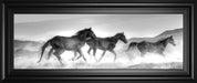 Experience the untamed beauty and raw energy of nature with this captivating Running Horses framed print. This panoramic artwork features three majestic horses galloping through a cloud of dust, their powerful forms captured in striking monochrome tones that evoke a timeless elegance. Perfect for any living room, office, or den, the piece brings a dynamic sense of freedom and movement to your space. Housed in a sleek black frame with crystal-clear real glass, it offers both protection and a refined finish. Ready to hang and crafted with expert care in the USA, this print celebrates the strength and spirit of animals in motion.
