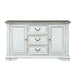 Blending of European traditional design influences makes Abbey Park a truly unique style for any living space. Warm antique finishes and artistic distressing along with grand scale makes Abbey Park a group to be passed to generations. The antique white finish with heavy chipping combines with the weathered brown white wash tops for a truly unique look. Bail and drop ring hardware in antique pewter add the finishing touch to the cases.