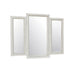 • Boasts a regal design with silver-tipped intricate molding along the border and beveled mirrors with a trifold design for multi-angle viewing