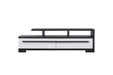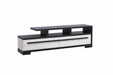This entertainment console is a masterpiece of modern design, combining sleek lines with a bold, industrial edge. Its sophisticated black and white wood finish brings depth and character, perfect for elevating a contemporary living space. Featuring an open shelf for easy access to media devices and two spacious drawers with minimalist pulls, this piece provides ample storage while maintaining a clean, streamlined look. The console’s low profile and sturdy construction create a chic, grounded aesthetic, ideal for those who appreciate both style and functionality. With its understated yet striking presence, this console adds a refined touch to any entertainment area, making it as practical as it is stylish.