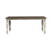 Whitney has the rich character of an English farmhouse appeal. The antique linen and weathered gray finish gives this group an heirloom appeal. The 94 inch trestle table with heavy turned legs on the tables and chairs create an English country charm.