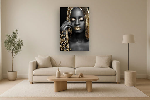 Classy LivingImmerse yourself in the striking elegance of "Woman Gold Hair," a contemporary photographic wall art piece printed on durable tempered glass. This ...