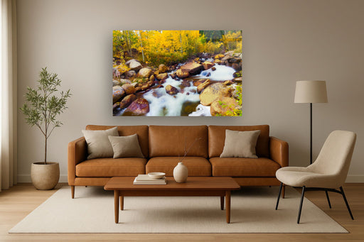 Classy LivingImmerse yourself in the serene beauty of nature with "Water Runs Through Aspen," a stunning photographic wall art piece printed and hand-embellishe...
