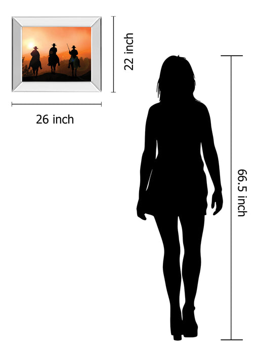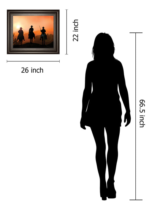 Classy LivingStep into a tranquil moment of the western frontier with this evocative wall art, where three riders silhouette against a glowing orange sunset. Th...