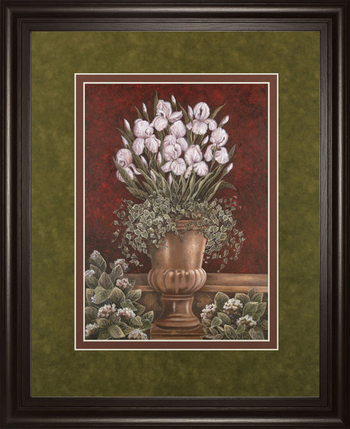 Classy LivingStep into a serene garden with this exquisite botanical wall art, where delicate irises bloom gracefully in a classic bronze urn. Set against a ric...