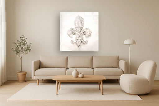 Classy Living“Fleur in Gems” is a stunning contemporary wall art piece crafted on durable tempered glass. The artwork features an abstract fleur-de-lis design e...