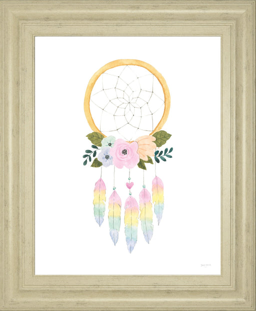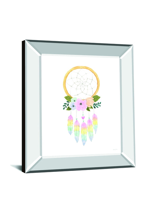 Classy LivingThis delicate drawing, Chasing Rainbows IX, captures the serene beauty of a dreamcatcher adorned with soft pastel feathers and gentle florals. Fram...
