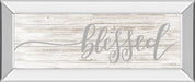 Invite a warm sense of gratitude into your home with this beautifully designed wall art featuring the word "blessed" in elegant script. Set against a soft, weathered wood background in calming white, gray, and beige tones, the piece exudes a serene, rustic charm. The sleek 2.5-inch mirrored frame adds a modern touch, reflecting light and enhancing the artwork's subtle details. Protected by crystal-clear real glass, this 42 by 18-inch framed art is perfect for living rooms, hallways, or entryways, offering a stylish reminder to appreciate life's blessings every day.