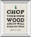 Celebrate the spirit of self-reliance with this inspiring framed wall art featuring the timeless quote, “Chop your own wood and it will warm you twice.” The bold, distressed typography evokes a rustic charm, while the subtle pine tree and crossed axes add a touch of nature and craftsmanship. Set against a cream background and encased in a sleek mirrored frame, this piece reflects light and adds depth to any living room, den, or cabin space. Ready to hang and designed to bring warmth and motivation, it’s a perfect addition to your home décor that combines style with meaningful inspiration.