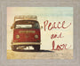 Step back into a simpler time with this retro-inspired framed wall art featuring a classic red van parked by the water's edge. The warm, sunlit scene is infused with a message of peace and love, captured in elegant script that complements the vintage charm. Framed in natural wood, this piece blends soft reds, beiges, and blues to create a calming coastal vibe perfect for youth rooms or living spaces. Crafted with premium materials and ready to hang, it invites a nostalgic spirit and timeless warmth into your home décor.