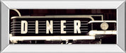 Step back in time with this captivating Retro Diner Sign, a framed wall art piece that effortlessly blends vintage charm with modern sophistication. The illuminated diner sign, set against a dark backdrop, evokes the warmth and nostalgia of classic roadside eateries, inviting memories of simpler days and timeless style. Encased in a sleek mirrored frame, this artwork not only enhances the vibrant glow of the neon lights but also reflects ambient light to brighten your living room, office, or den. Crafted with precision and ready to hang, it offers a perfect balance of retro Americana and contemporary elegance, making it a striking focal point in any space.
