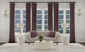 Show off your curve appeal with this updated kidney silhouette that blends fresh appeal and timeless elegance in a modern loveseat. This great piece, featuring soft, neutral beige upholstery, is perfect to float in the center of a room as an attractive focal point. The loveseat's curvy profile is complete with a rounded back and arms with a sloping design, framed by extra wide channel details, lending a sense of sophistication in a den or living room. A pair of premium filled accent pillows featuring a wide corduroy stripe and plum textured boucle offer impeccable comfort for lounging. The loveseat stands on stylish tapered black powder coated metal legs, providing a lovely hint of vintage character and airy height.