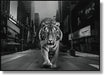 Experience the striking contrast of nature and urban life with "Urban Jungle: Majestic Tiger in Times Square." This captivating graphic art piece features a powerful tiger prowling through a monochrome cityscape, its piercing blue eyes drawing you into the scene. Printed on a high-quality gloss canvas and enhanced with hand-applied glitter accents, this artwork radiates depth and brilliance. The sleek black polystyrene frame adds a modern touch, making it a perfect statement piece for living rooms, offices, or dens. Ready to hang with professional mounting hardware, it brings an artistic fusion of wilderness and metropolitan energy to your space.