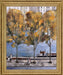 Step into a tranquil autumn afternoon along a Parisian riverbank with this enchanting artwork. The scene captures slender trees dressed in warm golden leaves, their branches gently swaying above a calm blue river. In the background, soft-hued buildings create a quiet cityscape, while a small boat rests peacefully by the shore. Two figures share a tender moment on the walkway, adding a human touch to the serene landscape. Encased in a rich gilded frame, this piece invites you to bring a sense of peaceful elegance and seasonal beauty into your living room, office, or den. Every detail is preserved under premium real glass, ensuring the vibrant colors and delicate textures remain vivid for years to come.