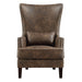 The Kori Accent Chair is a one-of-a-kind expression of traditional style. Constructed with a combination of solid and engineered wood, this piece is as durable as it is refined. The wood legs are set in a warm, cherry brown finish that perfectly complement the decorative nail head trim, creating ageless stylistic flair. Supportive webbed seating and foam cushioning add comfort, while the included kidney pillow creates a perfectly curated look. Choose the Kori Chair for an accent piece that delivers both quality and style.