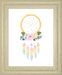 This delicate drawing, Chasing Rainbows IX, captures the serene beauty of a dreamcatcher adorned with soft pastel feathers and gentle florals. Framed in an elegant ivory bliss frame, it brings a calming and hopeful presence to any living room, bedroom, or nursery. The premium real glass enhances the vibrancy of the pastel hues while protecting the artwork, making it a timeless piece that effortlessly elevates your space with subtle charm and an uplifting message.