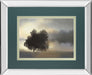 Misty Morning invites you into a quiet dawn where soft light gently pierces through a hazy landscape, revealing the graceful silhouettes of two trees beside a still lake. This framed photographic print is enhanced by a sleek mirrored frame and double-matted in muted greens, creating a layered depth that complements its serene mood. Protected by premium real glass, this tranquil scene brings a peaceful, reflective ambiance to your living room, bedroom, or office, making it a timeless piece that blends effortlessly with transitional décor styles.