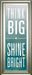Infuse your space with motivation and modern elegance through this striking framed wall art. Featuring bold white typography that reads 'Think Big Shine Bright' against a soothing blue gradient background, this piece encourages bold aspirations and positive energy. The sleek silver frame adds a refined touch, while premium materials and crystal-clear real glass ensure lasting vibrancy and durability. Perfectly sized for living rooms, bedrooms, or offices, this vertical artwork is ready to hang and bring a contemporary inspirational accent to your favorite space.
