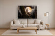 Experience the mystique of the night with "Night Owl," a captivating photograph printed and hand-embellished beneath durable tempered glass. This striking piece features a serene barn owl perched against a glowing full moon backdrop, framed by shadowy trees that evoke a tranquil nocturnal forest scene. The tempered glass finish adds depth and shine, enhancing the intricate details and soft hues of the owl's feathers and the moon's luminous surface. Ready to hang with angled sawtooth hangers, this contemporary artwork brings a touch of nature's quiet beauty and mystery to your living room or bedroom. Each purchase also supports a social cause, donating a meal to a hungry American child, making this art both inspiring and impactful.