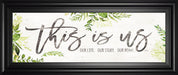 Embrace the heart of home with this beautifully framed piece that celebrates family and togetherness. The elegant script reading "This Is Us" is surrounded by lush green foliage on a soft whitewashed background, evoking a sense of peace and belonging. Housed in a sleek midnight aura frame with premium real glass, this artwork enhances any living room, family room, or hallway with timeless style and warmth. Crafted with care and ready to hang, it invites you to cherish your story and the comfort of home every day.
