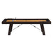 The Titus Shuffleboard Table is a phenomenal piece for your game room. This pub style shuffleboard table is constructed with a beautiful spruce veneer, solid wood legs and tension rods for stability. The gaming board surface has a shiny, polished wax coating to ensure the game puck glides from end to end. Go head to head with your friends as this table has two twenty one piece scorers for point keeping. The transitional style of this piece will flow with any game room setting or gaming furniture you may have.