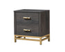 Step into a realm of contemporary sophistication with this bedroom collection. Flaunting a harmonious blend of rich, warm wood tones and bold, metallic accents, each piece exudes a luxe yet inviting appeal. The bed, with its sleek, linear design and striking headboard, becomes the centerpiece, complemented by storage options that blend functionality with chic, clean lines.