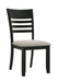 This dining group is the epitome of modern sophistication and functional elegance. The centerpiece is a sleek, rectangular table with a beautifully textured wood grain finish, offering a touch of rustic charm to its contemporary design. The table is complemented by a set of four ladder-back chairs and a versatile bench, all featuring a deep black frame that provides a striking contrast to the neutral, upholstered seats. The cushioned seating ensures comfort, while the bench adds flexibility and a communal feel, perfect for both family meals and entertaining guests. The overall design is enhanced by clean lines and a minimalist aesthetic, making this set a stylish focal point for any dining space.
