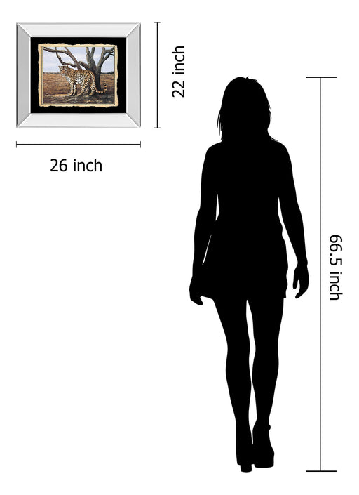 Classy LivingStep into the sunlit savanna with this captivating portrayal of a poised leopard standing beside a weathered tree. The rich gilded radiance frame e...