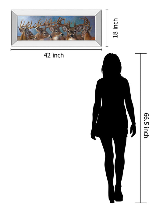 Classy LivingStep into a tranquil forest scene with this captivating artwork featuring a group of majestic deer, each with impressive antlers that command atten...