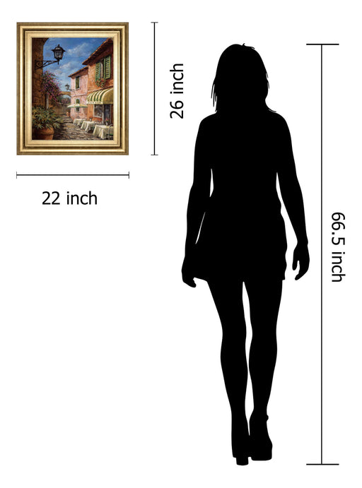 Classy LivingTransport yourself to a sunlit European village with this captivating framed wall art, where a quaint café bar nestles along a cobblestone path ben...