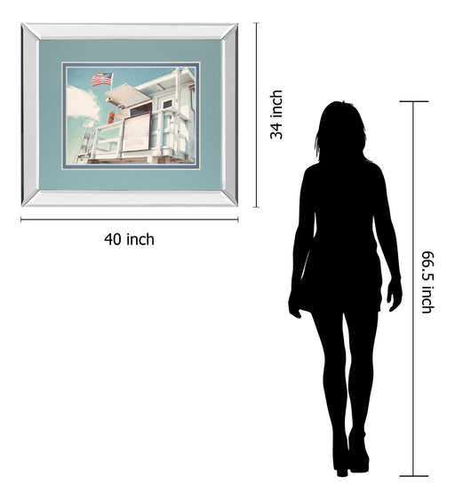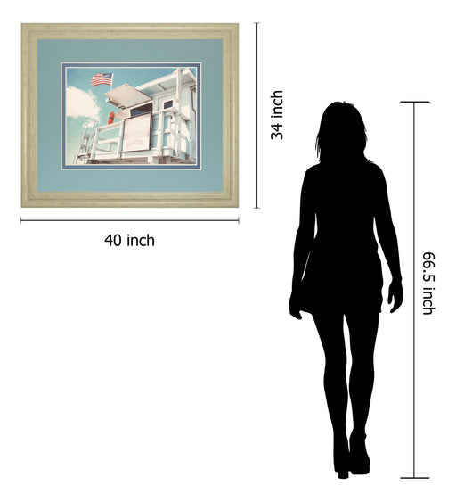 Classy LivingStep into a tranquil coastal scene with this captivating lifeguard tower artwork, where the gentle breeze flutters the American flag against a sere...