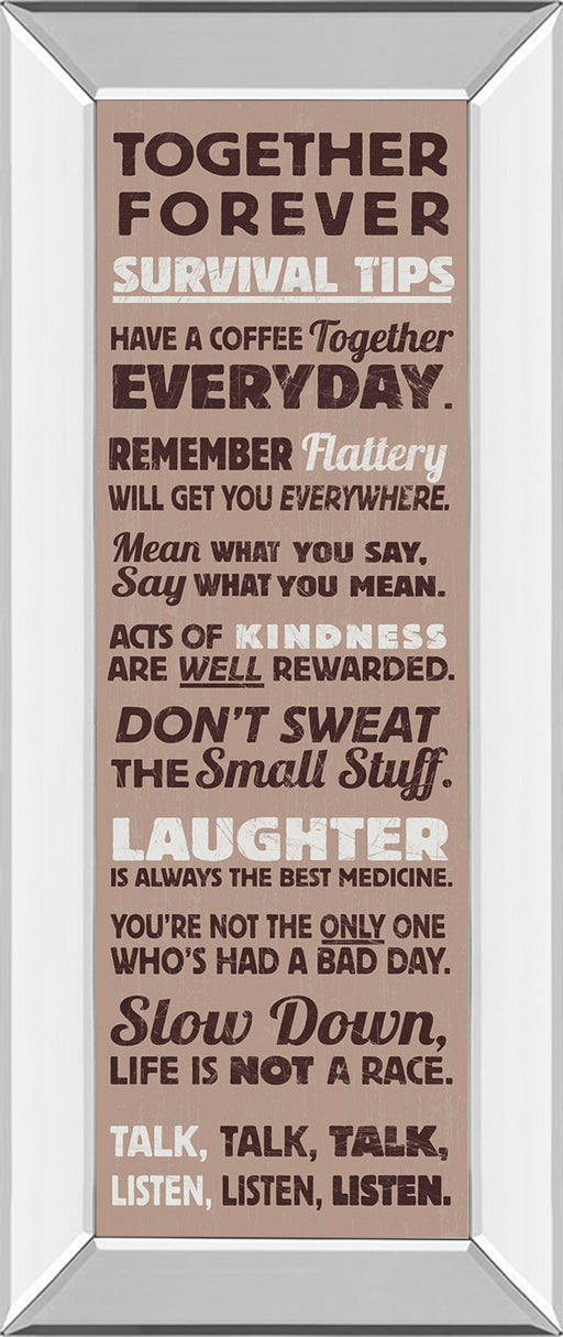 Classy LivingThis inspiring wall art piece, titled "Together Forever," offers a collection of heartfelt survival tips designed to brighten any living room or of...
